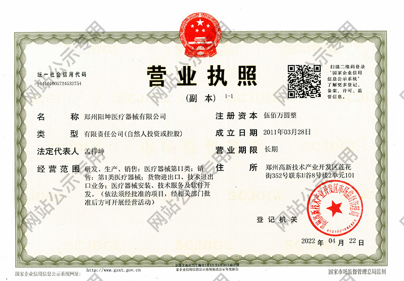 鄭州陽(yáng)坤醫(yī)療器械有限公司是集研發(fā)、生產(chǎn)、經(jīng)營(yíng)、服務(wù)為一體的高新技術(shù)企業(yè)。公司位于鄭州市高新技術(shù)開(kāi)發(fā)區(qū)。總部擁有標(biāo)準(zhǔn)的生產(chǎn)廠(chǎng)房和產(chǎn)品研發(fā)基地。擁有一批既有理論又有豐富實(shí)踐經(jīng)驗(yàn)的管理人才、科技人才和銷(xiāo)售服務(wù)人才,從而使公司具備了科學(xué)化、規(guī)范化的現(xiàn)代企業(yè)管理機(jī)制。形成了研發(fā)、生產(chǎn)、銷(xiāo)售、服務(wù)為一體的企業(yè)體系。